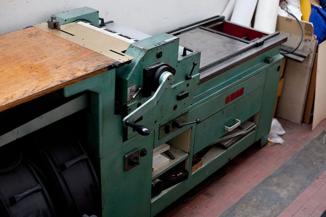 MR / Micro adjustable bed movement with clock indicating accurate height in fractions of thousands of an inch. Height is measured directly off table.