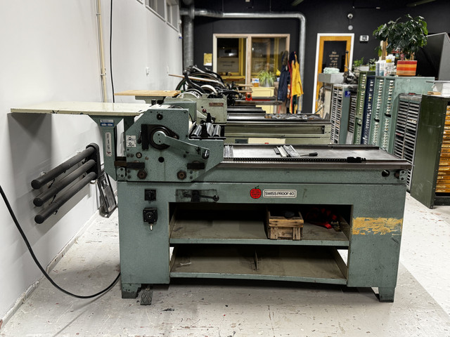 Marit Brandsnes on the FAG Swiss Proof 40 ‹The press arrived to the studio, fall 2025. It need some fixing. It needs to be rewired (soon ta happen) and the cylinder must be dismantled and a new pin needs to replace the old broken one. (The problem causes that the grippers wouldn't open)›