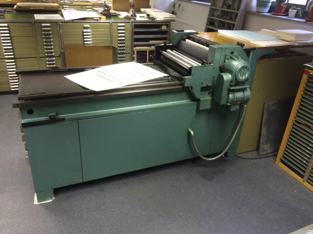 ME / Two speed power driven inking system with ink drum. Normal speed for printing. Acceleration for ink distribution and wash-up.